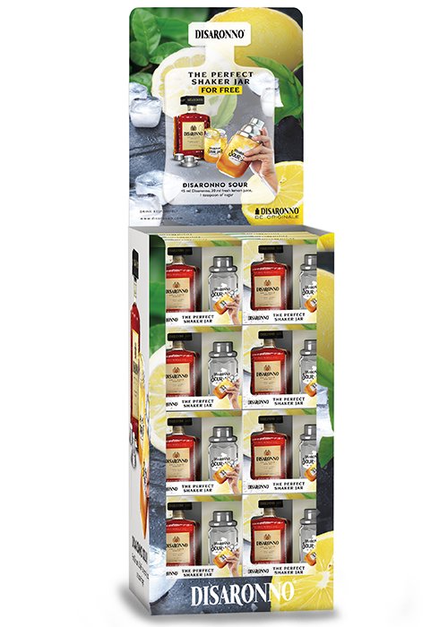 Una confezione promozionale “value added pack” per educare il consumatore a preparare a casa un perfetto sour, con lo shaker in omaggio.