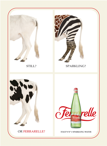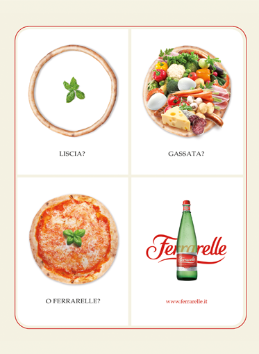 Ripresa della storica campagna Ferrarelle soggetto “gioconda”, centrale sul messaggio “liscia gassata o Ferrarelle”, per generare una multisoggetto fortemente proprietaria con cui gestire i diversi messaggi. La campagna si focalizza su mondi gastronomici specifici e gioca su una serialità provocata e inaspettata, effervescente.