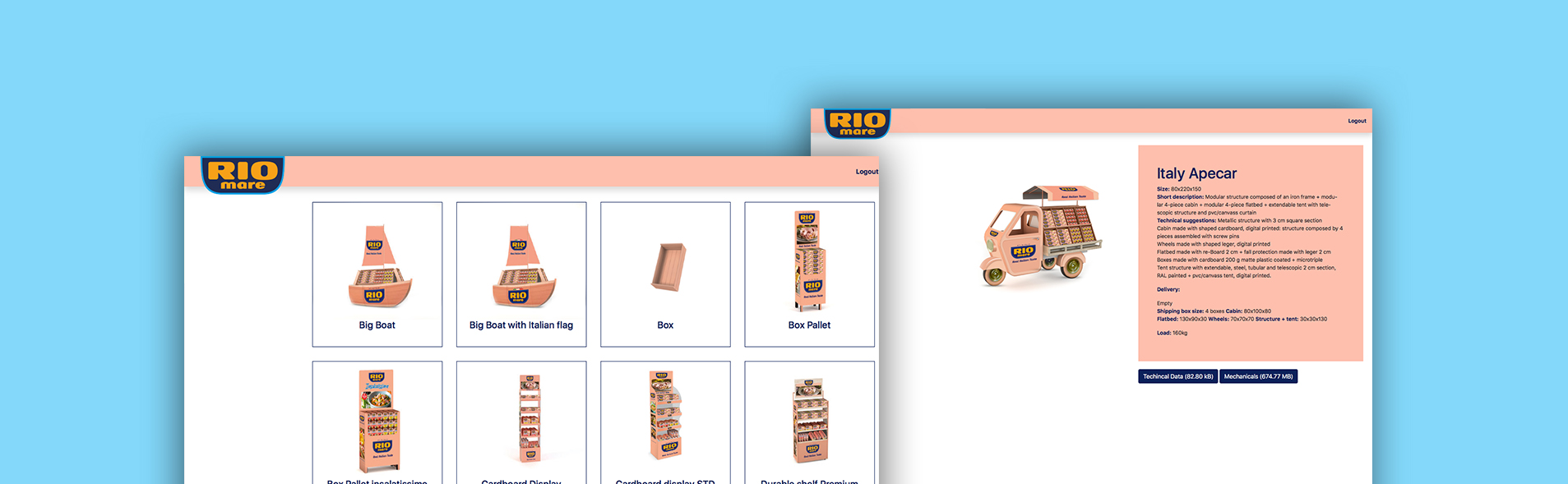 Razionalizzare gli strumenti di visual merchandising e di instore promotion di un brand internazionale, presente in un elevato numero di Paesi, richiede uno strumento digitale di facile consultazione, in grado di trasferire tutte le informazioni utili per l’implementazione nei diversi mercati. LIFE ha creato per RIO MARE una piattaforma digitale che risponde in un unico strumento alle principali FAQ dei Trade Marketing manager e dei principali referenti della distribuzione.